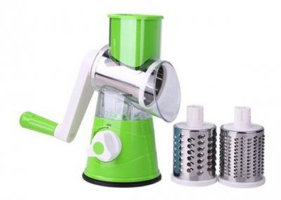 aus Kunststoff mit Saugfuß einfaches Tauschen der Reibeinsätze (Feinreibe, Grobreige, Hobel)